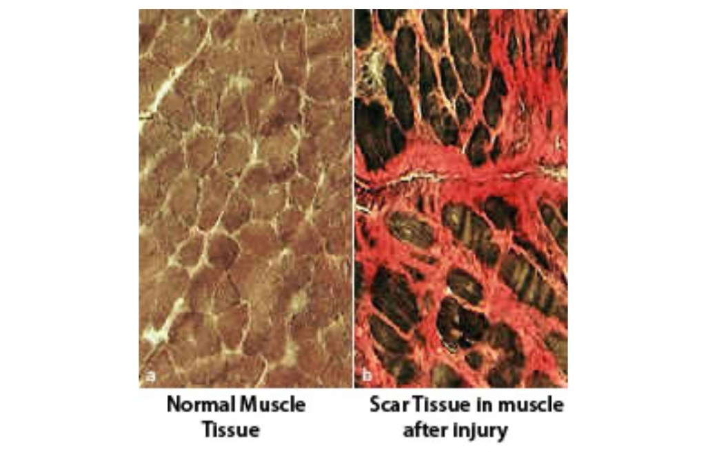 First, I must paint a picture about scar tissue. Scar tissue is a collagen like structure. When an injuries occurs, the body gets desperate. It starts laying down a criss-cross mish mash mess of collagen, in hopes to protect the area of the body from further injury.